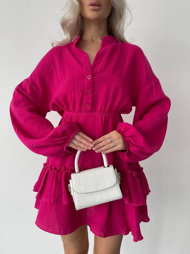 | Тип призначення | Жіноче ніжне весняне муслінове легке мініплаття на ґудзиках із довгим рукавом із фігурними швами VS |