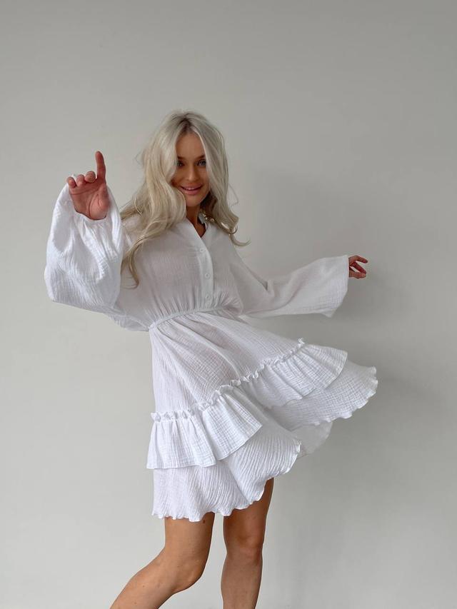 Жіноча ніжна весняна муслінова легка міні сукня на гудзиках з довгим рукавом з фігурними швами VS