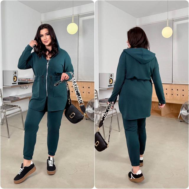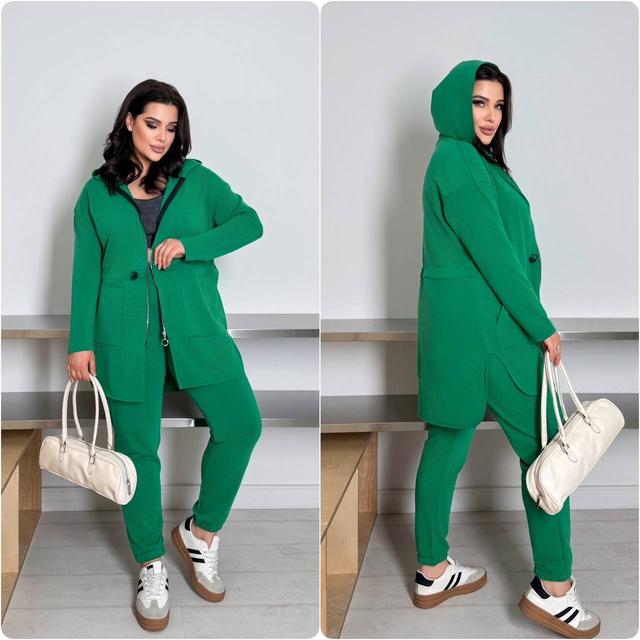 | Тип призначення | Жіночий прогулянковий весняний костюм батал кардиган на блискавці та штани джогери великого розміру двонитка люкс |
