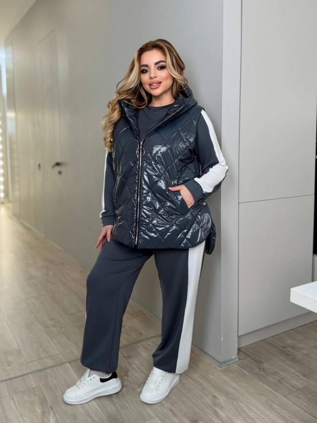 Показати оптові ціни💎Костюм трійка ( жилет + штани + кофта) 50-52, 54-56, 58-60, 62-64💎