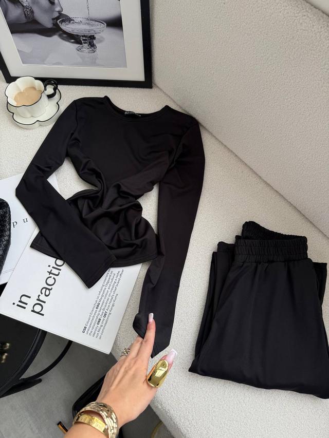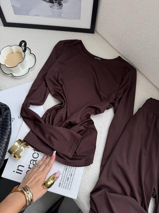 | Тип призначення | Жіночий базовий стильний прогулянковий костюм 42-46 мікродайвінг Туреччина кофта топ лонгслів і штани палаццо |