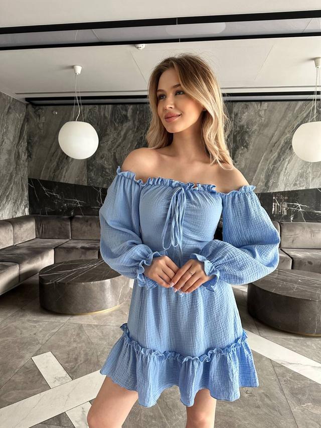 Жіноча коротка сукня з мусліну в літніх кольорах - це легка і повітряна сукня, створена спеціально для літніх днів, коли жінки хочуть почуватися комфортно та вільно.