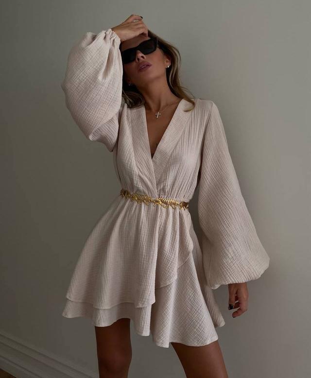Сукня має короткий крій, який підкреслює жіночність та оголює ноги, створюючи грайливий та легкий образ.