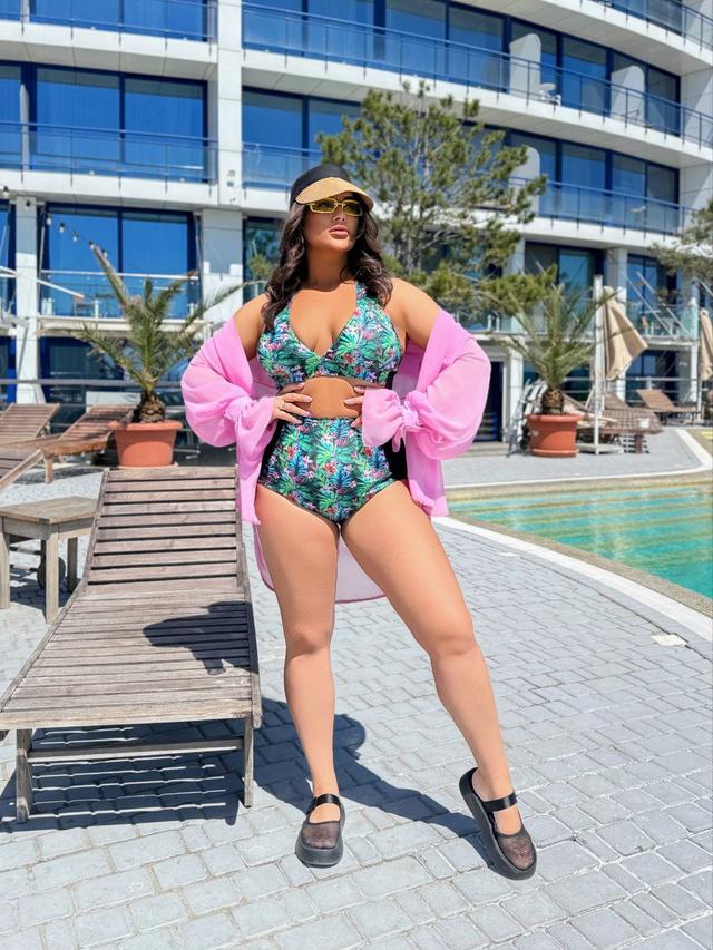| Тип призначення | Купальник жіночий базовий ідеальний роздільний плавки висока талія ліф топ біфлекс пляжний принт батал |