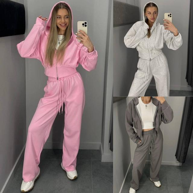 | Тип призначення | Жіночий осінній базовий прогулянковий костюм-двійка кофта толстовка на блискавці худі та прямі штани двонитка |
